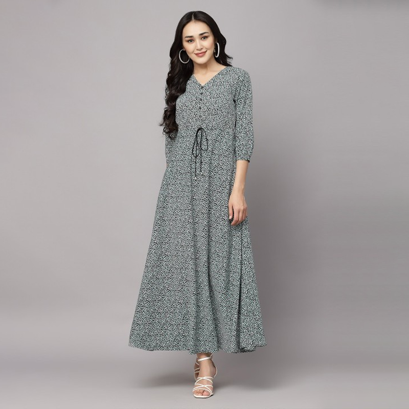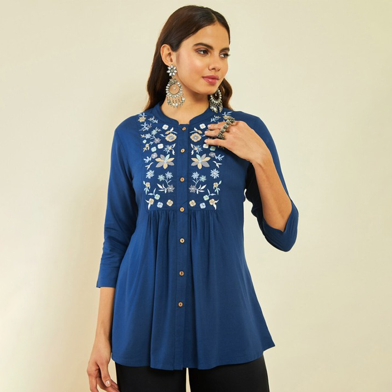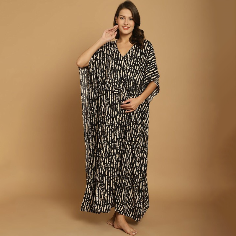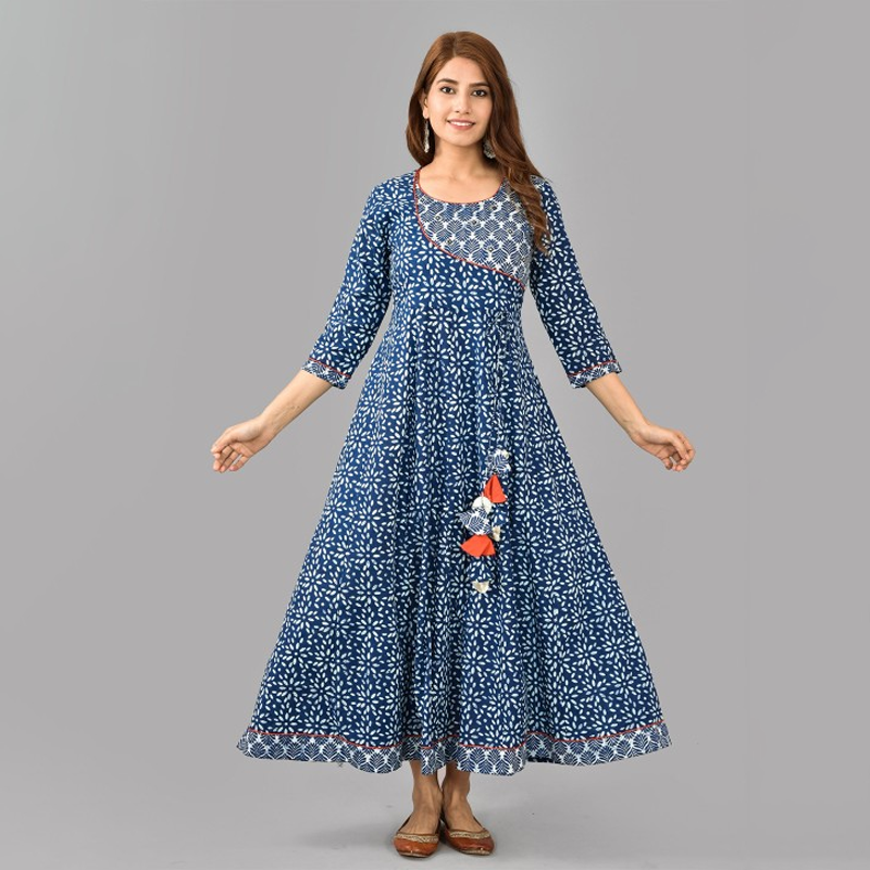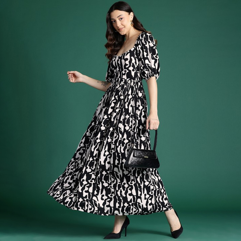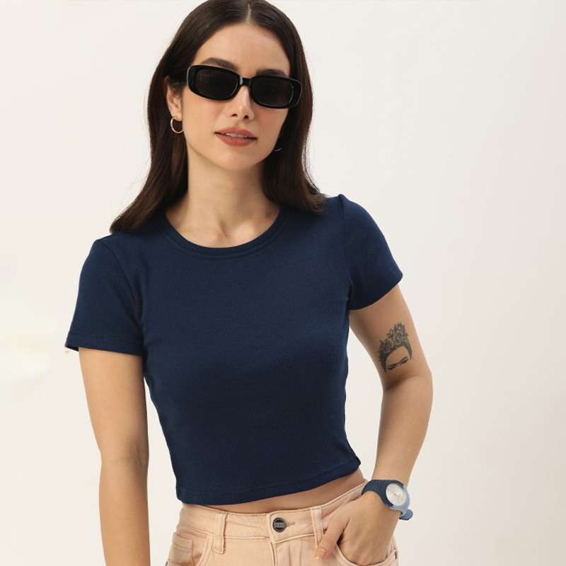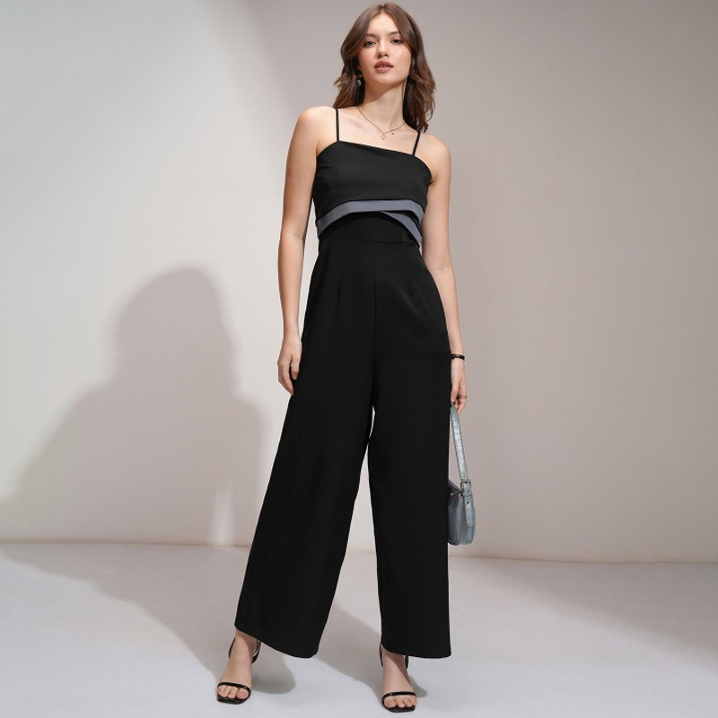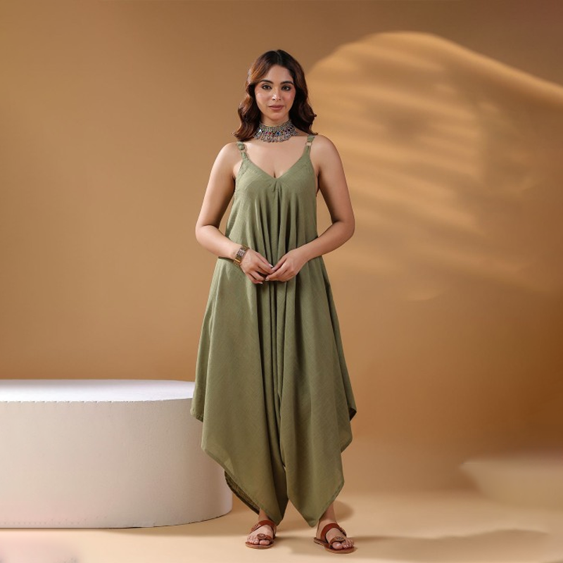 Navy blue and white printed basic jumpsuit ,has a boat neck, three-quarter sleeves, 2 pockets Size & Fit The model (height 5'8) is wearing a size S Material & Care Viscose Rayon Machin wash