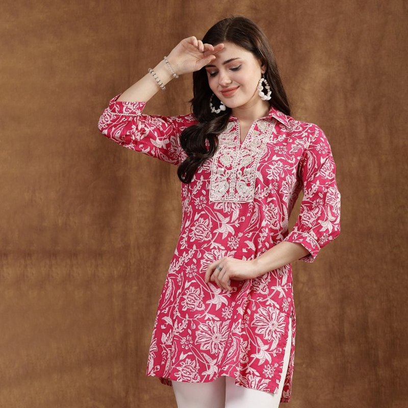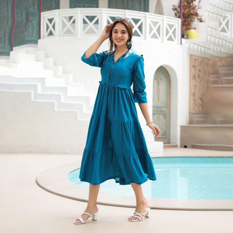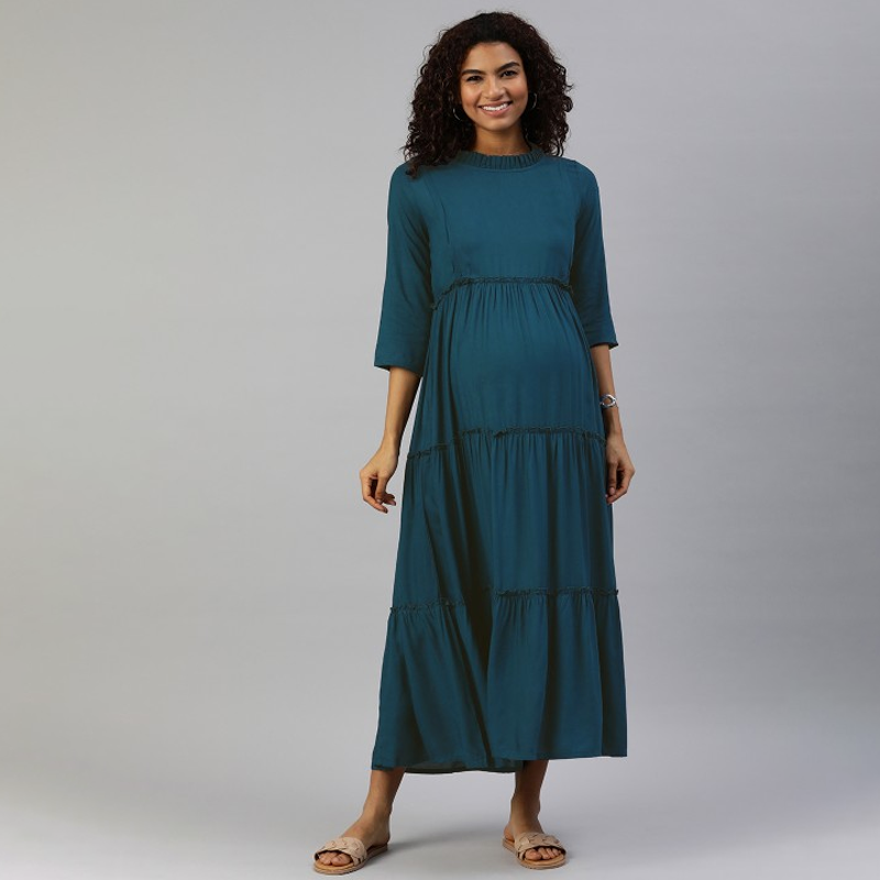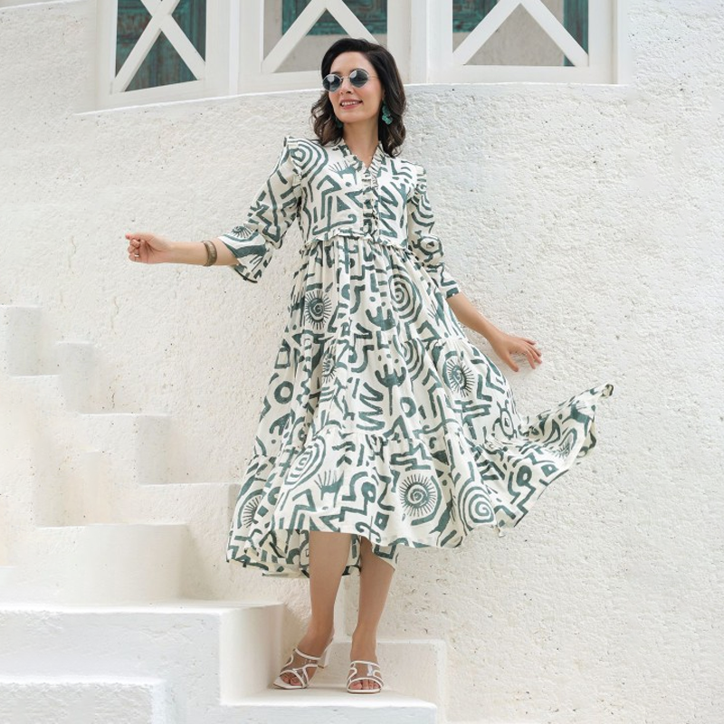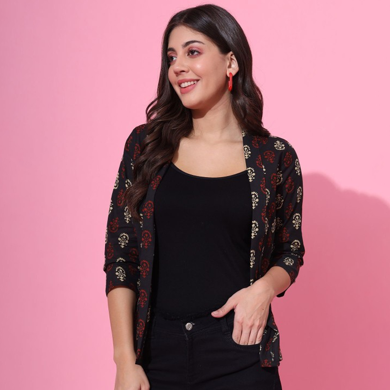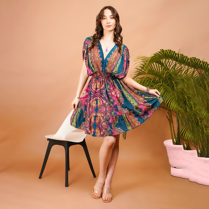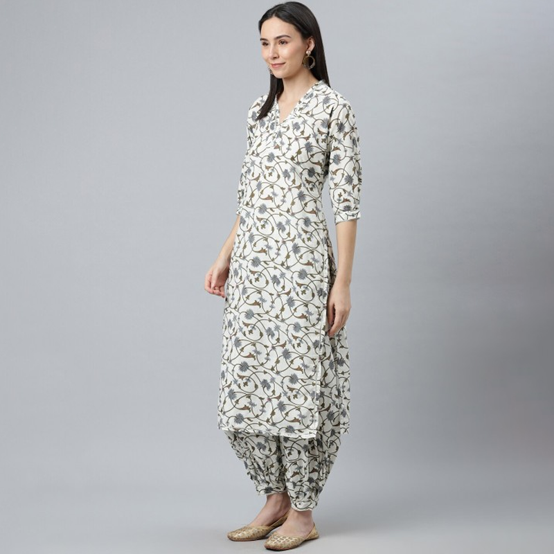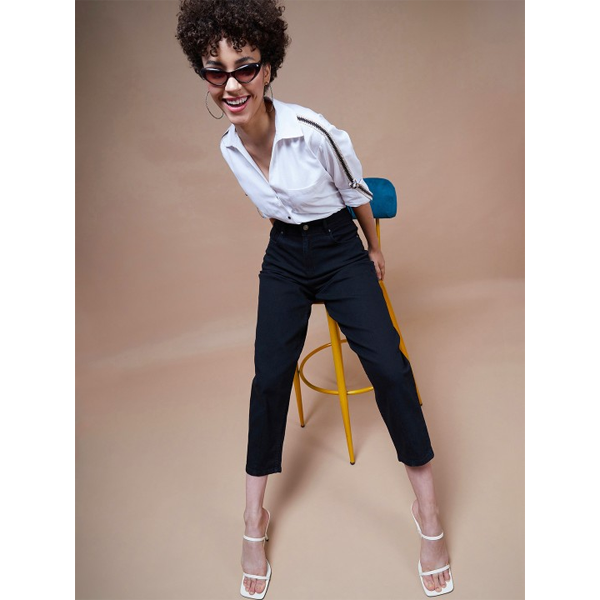 Navy blue and white printed basic jumpsuit ,has a boat neck, three-quarter sleeves, 2 pockets Size & Fit The model (height 5'8) is wearing a size S Material & Care Viscose Rayon Machin wash