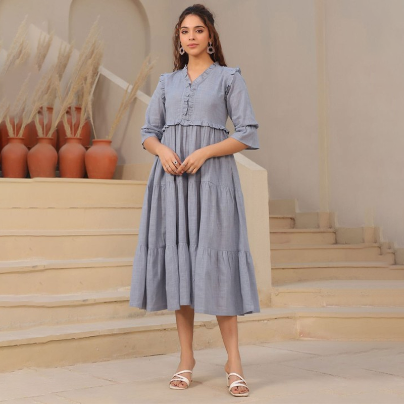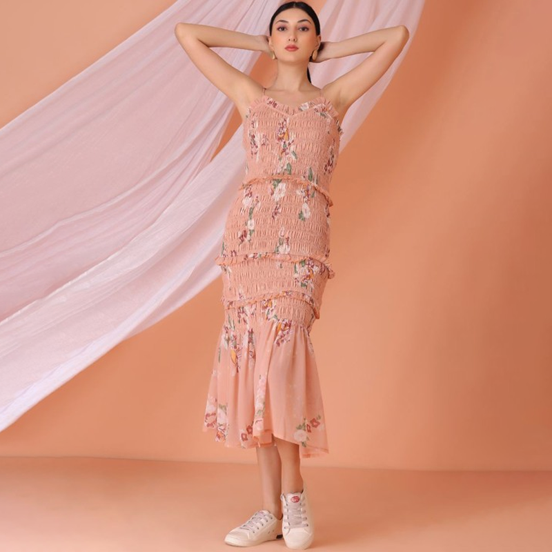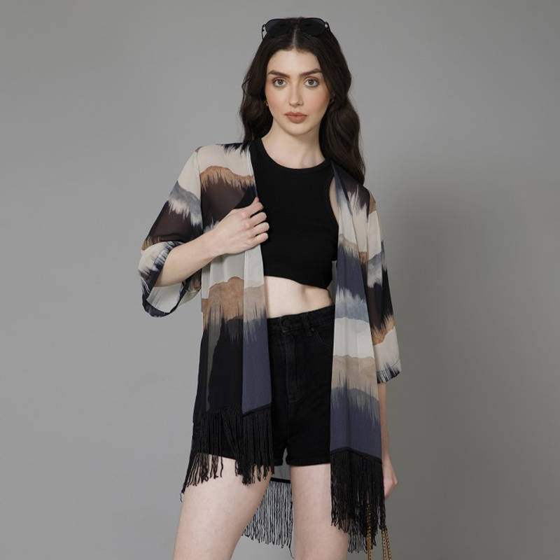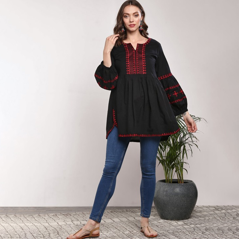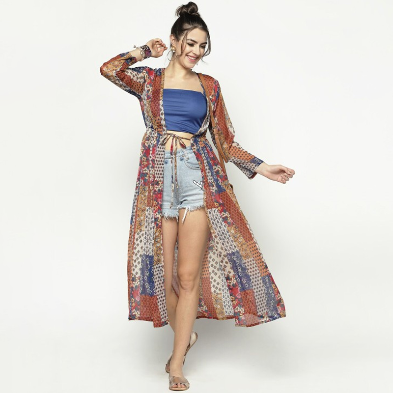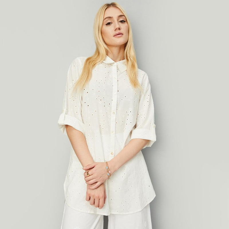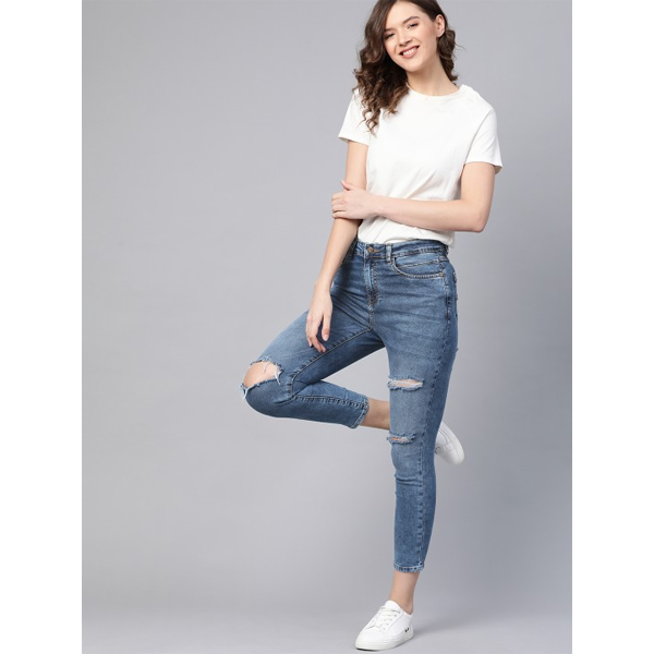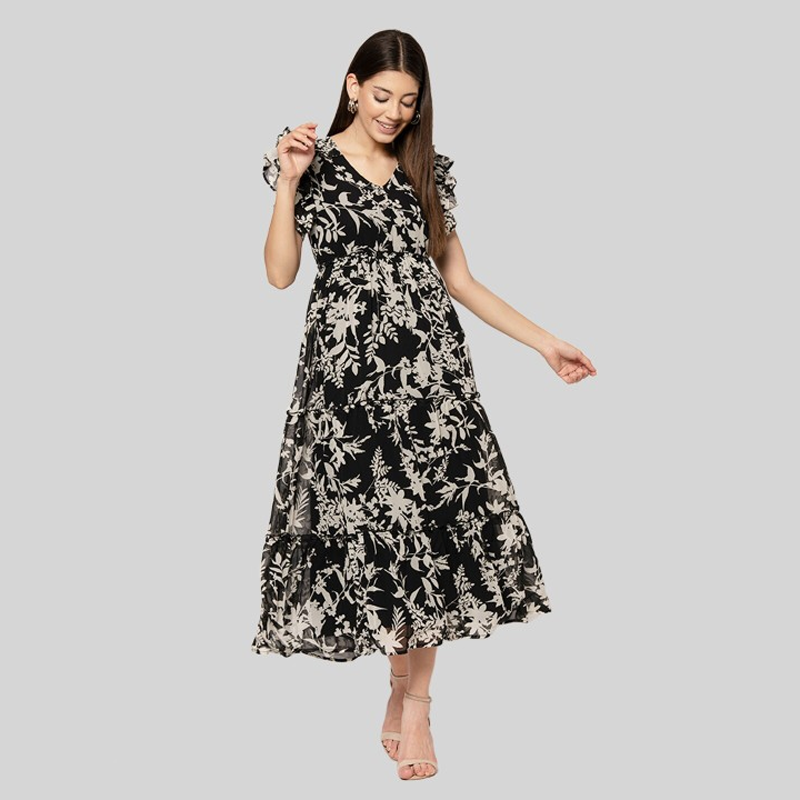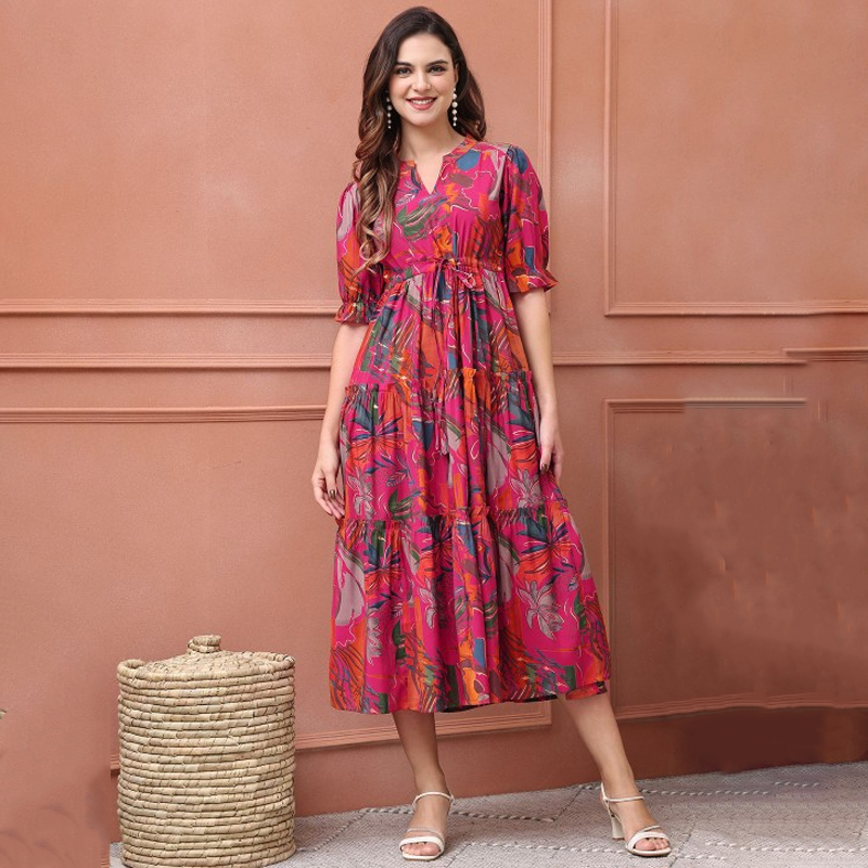 Navy blue and white printed basic jumpsuit ,has a boat neck, three-quarter sleeves, 2 pockets Size & Fit The model (height 5'8) is wearing a size S Material & Care Viscose Rayon Machin wash