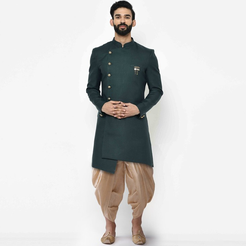 Men Self-Design Cotton Indowestern Sherwani Set